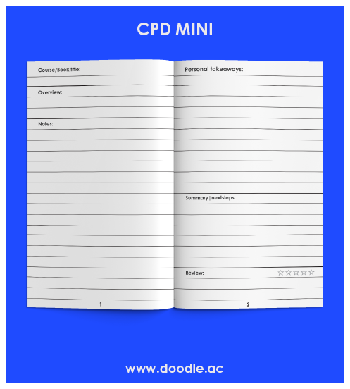 CPD Journal, designed to help you track the impact of your professional development. 68 mini a5 pages (120x210mm), fully carbon balanced from print to delivery!